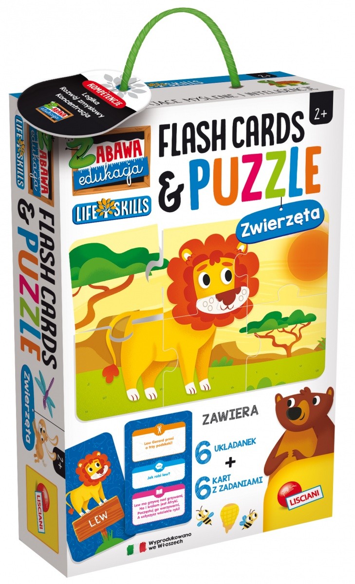 Zestaw edukacyjny zawierający puzzle i karty edukacyjne. Dzięki puzzlom dziecko układa zwierzątko, a dorosły używając karty z podpowiedziami, zadaje dziecku pytania. Zabawa i edukacja to nowa seria edukacyjna, która pozwala dzieciom na poznawanie określonych obszarów i zdobywanie istotnych kompetencji, które są istotne w późniejszych etapach życia. Światowa Organizacja Zdrowia wyodrębniła 10 umiejętności życiowych, które są potrzebne by wyrosnąć na lepszą i szczęśliwszą osobę, która jest w stanie prowadzić godne życie. I to właśnie te umiejętności są rozwijane w grach z tej serii, które są również dla dziecka świetną zabawą.