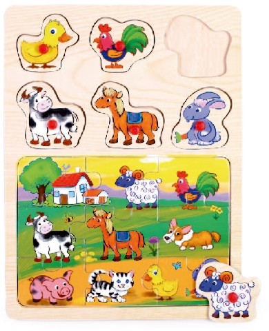 Puzzle drewniane z pinezkami 2 w 1 TOP BRIGHT - Łąka