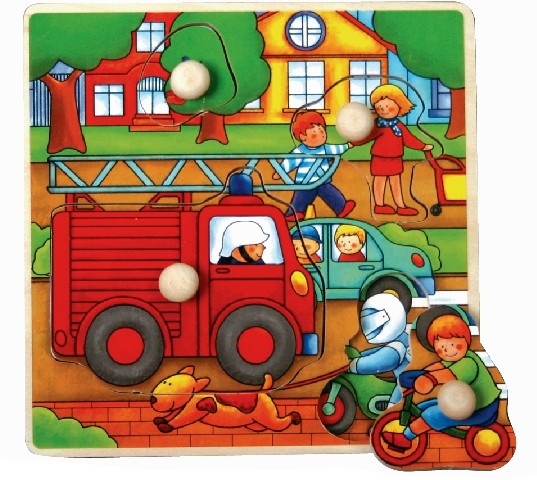 TOP BRIGHT Puzzle drewniane z pinezkami - Straż Pożarna 17 x 17 cm