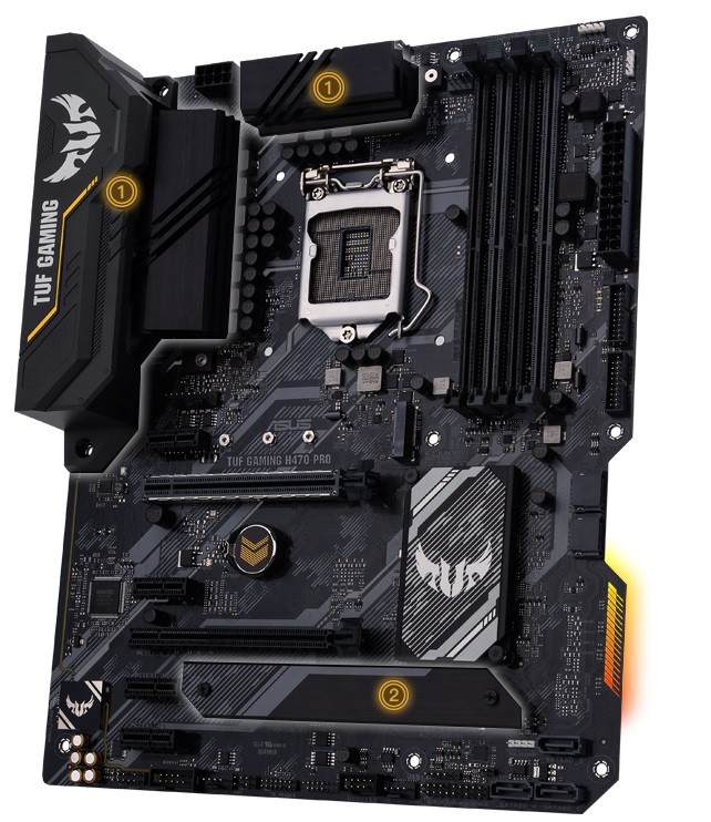 TUF Gaming H470-PRO destyluje istotne elementy najnowszej platformy Intel i łączy je z funkcjami gotowymi do gry i sprawdzoną trwałością. Ta płyta główna, zaprojektowana z komponentów wojskowych, ulepszonego rozwiązania zasilania i kompleksowego zestawu opcji chłodzenia, zapewnia niesamowitą wydajność i niezachwianą stabilność w grach.
