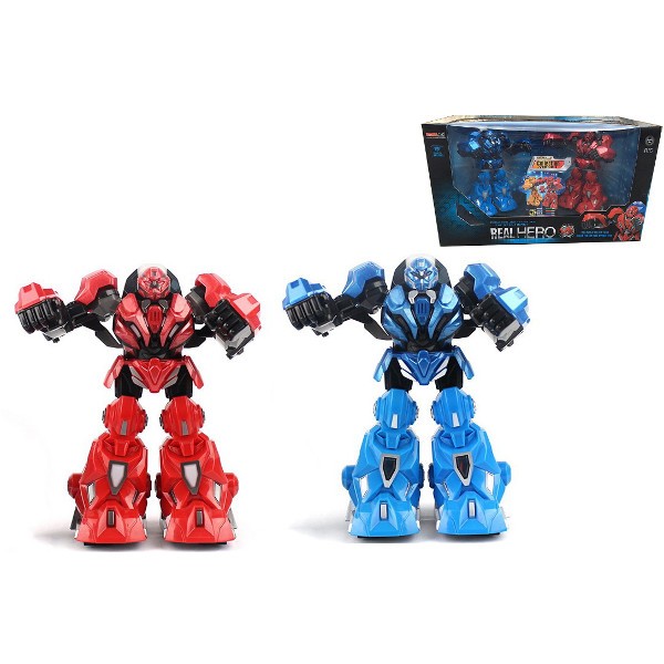 Walki jeden na jednego. Piloty w podczerwieni pozwalają na zabawę dwóch graczy jednocześnie. Real Hero to najnowsza generacja innowacji gier. Możliwość programowania ruchów robotów.