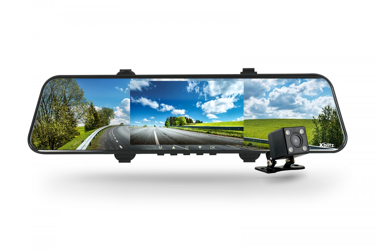 Xblitz Park View Ultra składa się z dwóch kamer - przedniej i tylnej. Przednia kamera znajduje się w obudowie, która pełni również funkcję klasycznego lusterka wstecznego z wbudowanym wyświetlaczem LCD. Natomiast tylna kamera jest równocześnie kamerą cofania. Szerokokątne obiektywy obu kamer gwarantują duże pole widzenia, dzięki czemu widzisz i rejestrujesz więcej. Wysoka rozdzielczość kamer w Xblitz Park View Ultra gwarantuje świetną jakość nagrywanych filmów. Przednia kamera nagrywa w Full HD natomiast tylna w HD. Dzięki wysokiej jakości nagrań żaden szczegół nie umknie rejestracji. Kamera została wyposażona w czytelny wyświetlacz IPS 5 cali, który umożliwia podgląd nagrania w czasie rzeczywistym, jak również przeglądanie plików archiwalnych. Ponadto podczas korzystania z trybu parkowania na ekranie wyświetla się podgląd z tylnej kamery, dzięki czemu parkowanie staje się prostsze i bezpieczniejsze. Rejestrator stworzony z materiałów najwyższej jakości. Funkcja G-sensor odpowiada za zabezpieczenie kluczowych danych w momencie kolizji lub nagłego hamowania. Kamera automatycznie zabezpieczy przed skasowaniem pliki wideo (z najbliższego przedziału czasowego), które nie zostaną nadpisane w przypadku kontynuacji funkcji nagrywania. Rejestrując trasę kamerą Xblitz Park View Ultra nie musisz martwić się o brak miejsca i ciągłe usuwanie archiwalnych plików. Rejestrator nagrywa obraz w trybie ciągłym (zapis w pętli). Oznacza to nic innego jak nadpisywanie starszych plików - plikami nowszymi.