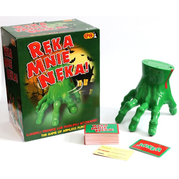 Ręka porusza się po niewielkim okręgu. Gdy sie zatrzyma, wskaże palcem jednego z graczy,a ten będzie musuiał wykonać zadanie z serii Prawda lub Wyzwanie. Ręka mnie nęka to wspaniała gra dla całej rodziny! Udawaj Tarzana, Naśladuj King Konga - to tylko przykładowe wyzwania, które wniosą mnóstwo uśmiechu i radości do każdego domu!