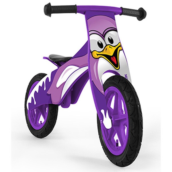 Rowerek Biegowy Duplo Pingwin charakteryzuje się nowoczesnym wyglądem, posiada antypoślizgowe rączki, solidną ramę wykonaną z lekkiego drewna, łożyskowane koła z obręczami, opony rowerowe z bieżnikiem i wentylem oraz miękkie i wygodne siedzisko, którego wysokość można regulować.