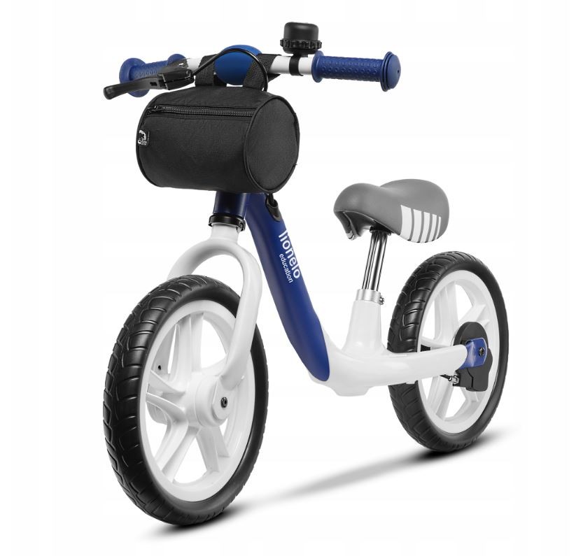- Rowerek Arie został wyposażony w zapinaną na zamek materiałową torbe na przodzie rowerka dzięki temu schowkowi maluszek może zawsze zabrać ze sobą swoje ulubione zabawki.