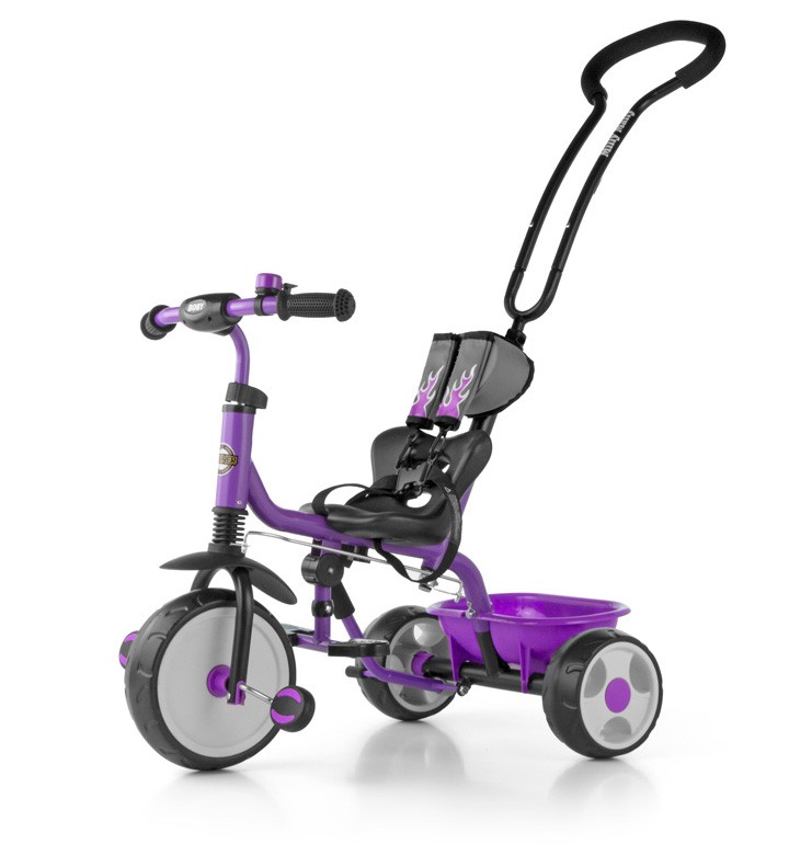 Wygodne siedzisko oraz miękkie oparcie zapewniają maksymalny komfort jazdy. Pięciopunktowe pasy utrzymują stabilność dziecka w siedzisku. Rowerek posiada prosty mechanizm działający na zasadzie sprzęgła. Po odłączeniu napędu pedałki mogą obracać się niezależne od ruchu przedniego koła, co przydatne jest podczas prowadzenia rowerka przez rodzica (ruch pedałków nie jest wymuszany przez ruch koła!). Rama łączona , co umożliwia złożenie rowerka np. na wyjazd.