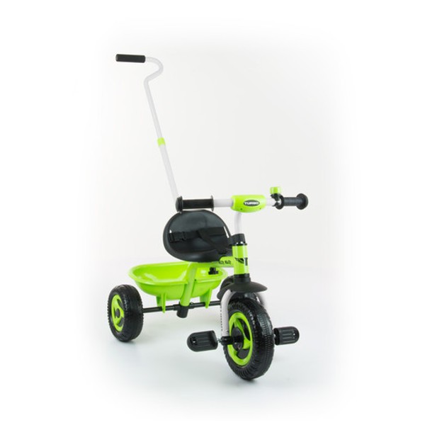 Rowerek Turbo posiada metalową, stabilną ramę. Wygodne siedzisko z pasmi bezpieczeństwa, które można regulować w czterech pozycjach oraz pasy bezpieczeństwa. Produkt jest wyposażony w funkcję wolnego kola, odczepiany uchwyt dla rodzica, a także koszyk na zabawki. Rowerek przeznaczony jest dla dzieci w wieku od 15 do 36 miesiąca życia.