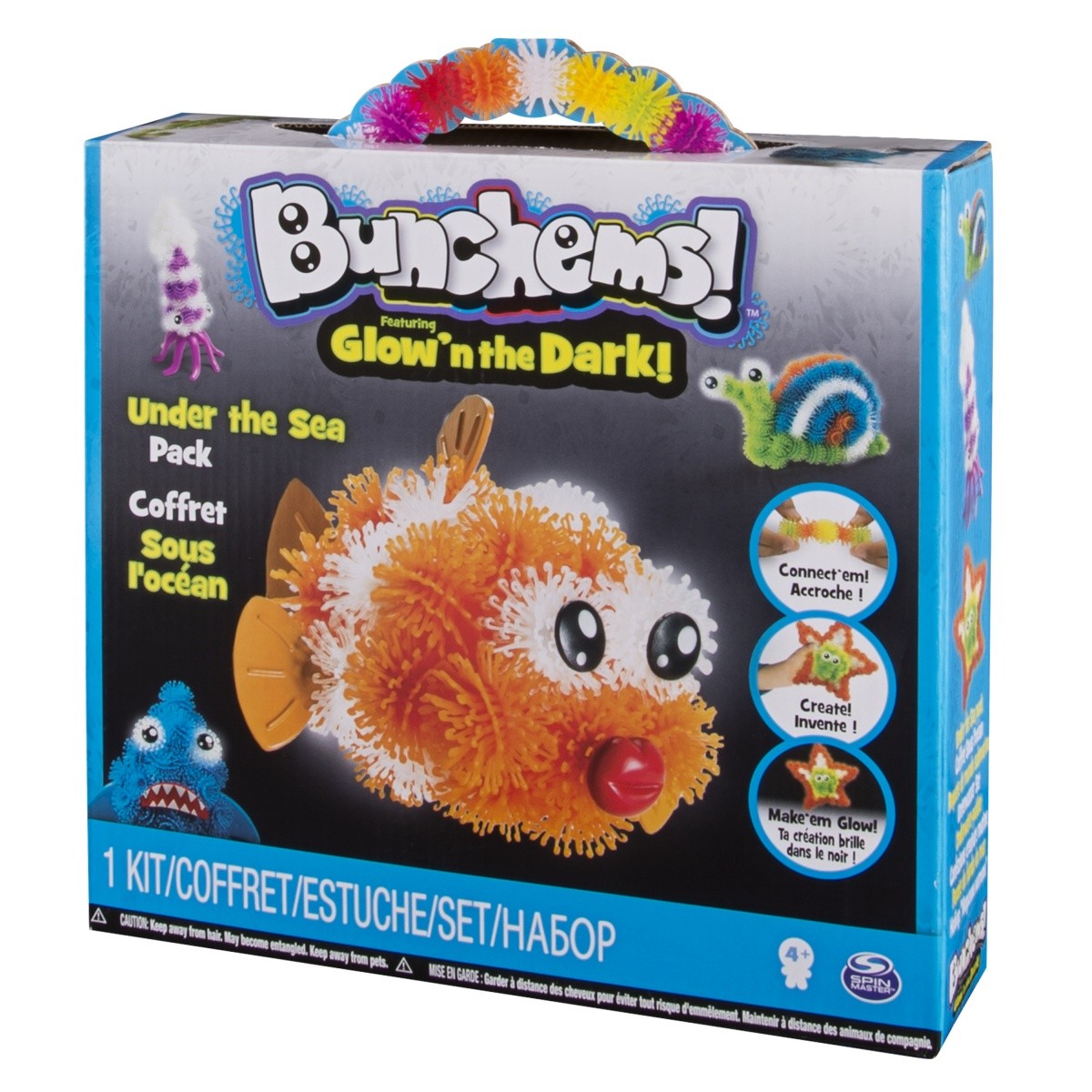 Ściskaj, łącz i twórz z rzepami Bunchems! Te małe kolorowe kulki łączą się ze sobą, tworząc niesamowite konstrukcje. Stwórz świecącego w ciemności rekina przy pomocy dołączonej instrukcji. Możesz też użyć swojej wyobraźni i zbudować własne morskie stworzenie! W tym wyjątkowym zestawie znajdziesz dodatkowe rzepy, które świecą w ciemności co pozwoli jeszcze bardziej wzbogadzić zabawę! Łącz je i rozrywaj z rzepami Bunchems masz nieograniczone możliwości!