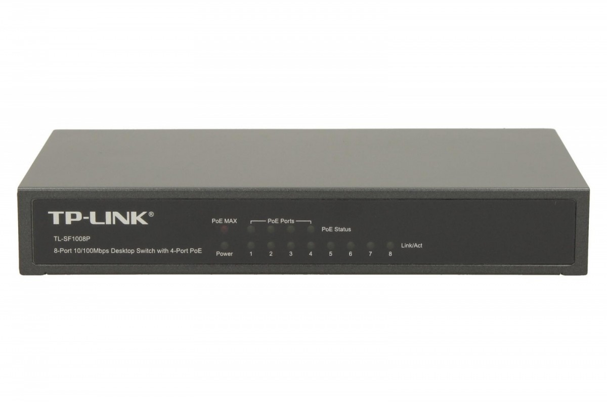 - Porty: 8 portów 10/100M RJ45, w tym 4 porty PoE (1-4), automatyczna negocjacja prędkości połączeń, automatyczne krosowanie MDI/MDIX