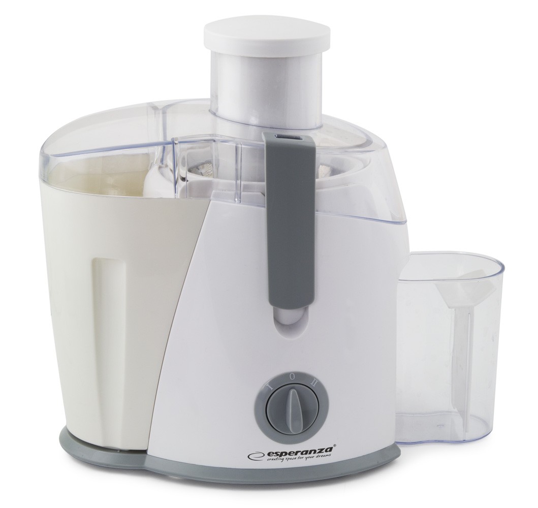 Zacznij dzień od porcji zdrowych witamin z soku przygotowanego w domu. Dzięki sokowirówce Esperanza FRAGOLA szybko otrzymasz świeży sok z owoców i warzyw. Nasza sokowirówka wyposażona jest w szeroki na 65 mm podajnik odpowiedni dla dużych i całych owoców czy warzyw. Wykonana z najwyższej jakości stali nierdzewnej. Dzięki 15 tysiącom obrotów na minutę oraz filtrowi z mikrosiateczką przygotujesz znacznie więcej zdrowego i pożywnego soku. Sokowirówka posiada pojemnik na odpady o pojemności 1000 ml oraz przeźroczysty dzbanek 450ml z separatorem piany. Sokowirówkę cechuje prostota obsługi oraz czyszczenia. Jest niezbędna w kuchni dla tych, którzy cenią zdrowie własne oraz swoich bliskich.