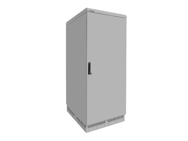 Szafa teleinformatyczna jednosekcyjna stojąca 27U, 600 x 1000 mm, serii FF55, w kolorze szarym o klasyfikacji szczelności IP55 przeznaczona jest do zastosowania w obszarach zewnętrznych szczególnie narażonych na działanie wpływu warunków atmosferycznych, gdzie oczekuje się zapewnienia należytej ochrony zamontowanych wewnątrz urządzeń przed oddziaływaniem niepożądanych czynników takich jak: