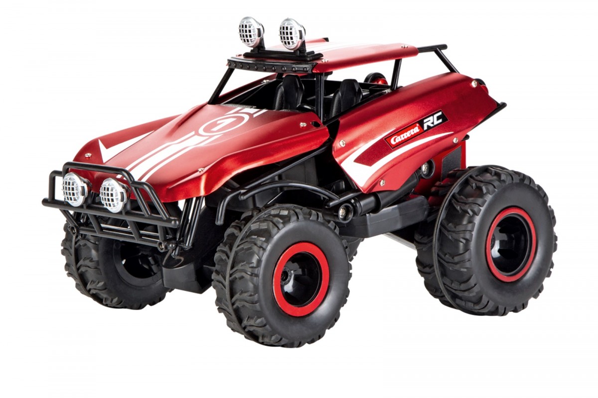 Prezentowany pojazd posiada pneumatyczne ogumienie, mechanizm różnicowy, resorowane zawieszenie oraz funkcję Differential Steering, która umożliwia precyzyjne sterowanie we wszystkich kierunkach proporcjonalnie do prędkości. Model działa w zakresie 2,4 GHz co pozwala na zabawę jednocześnie 16 pojazdami bez żadnych zakłóceń. Zabawka wyposażona w funkcję Auto Off , która po 30 minutach wyłącza ją w celu oszczędności baterii. Nadwozie wykonane z tworzywa równie trwałego jak ABS; doskonale odwzorowane detale. Pojazd odporny na zachlapania wodą. Autko oraz kontroler posiadają wbudowane anteny wewnętrzne. Pojazd posiada funkcję jazdy na tylnych kołach oraz potrafi wykonywać obroty 360 stopni.