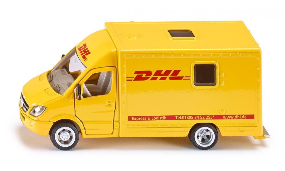 Oryginalny samochód kurierski DHL przewiezie towary w każde miejsce na czas.