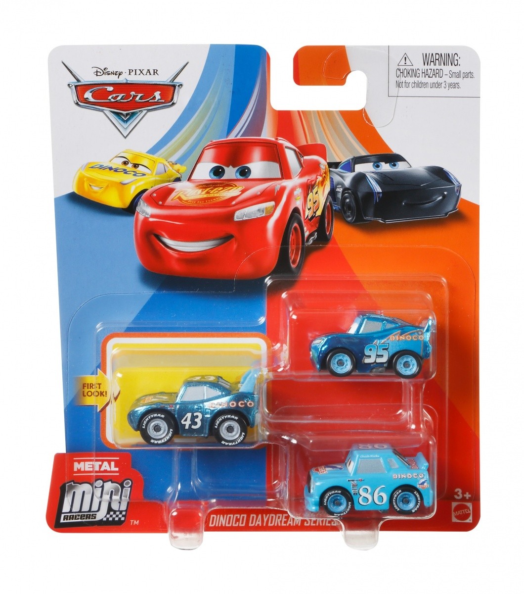 Te małe samochodziki znane z filmów Disney Pixar Auta są idealne do zabawy i zabierania ze sobą! Każdy tematyczny 3-pak zawiera trzy pojazdy, w tym jeden wyjątkowy. Ich kompaktowy rozmiar pozwala na odgrywanie filmowych scenek zarówno w domu, jak i w podróży! Zbierz wszystkie zestawy metalowych minipojazdów ze wszystkich trzech filmów, by odtworzyć ulubione scenki z Chłodnicy Górskiej, Błotoryi oraz wyścigów terenowych. Każdy 3-pak jest sprzedawany oddzielnie w zależności od dostępności. Kolory i elementy dekoracyjne mogą się różnić.