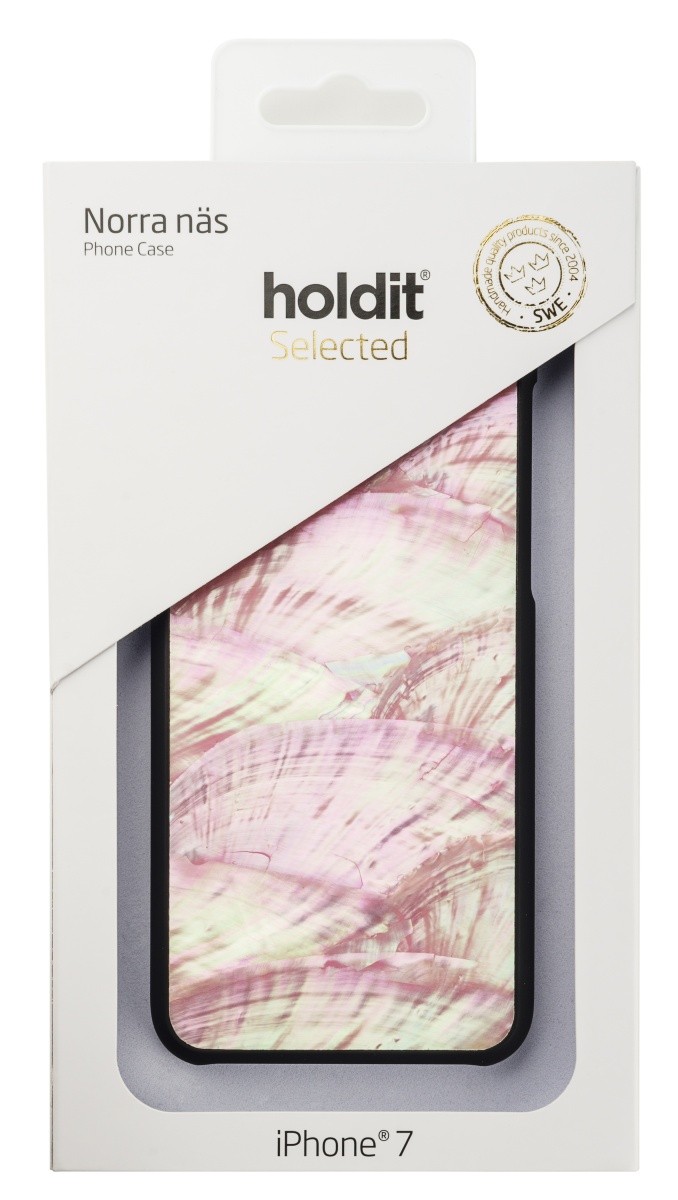 Ten materiał jest silnie iryzującą masą ze szwedzkich perłopławów każdy egzemplarz jest niepowtarzalny. Produkt pochodzi z ekskluzywnej linii Holdit Selected, a Norra Näs jest spokojnym, bogatym w ryby, regionem na zachodnim wybrzeżu Szwecji. Różowe etui przybiera barwy lila i łososiowe, zahaczając o turkus i zieleń. Produkt będzie świetnym wyborem dla wszystkich osób ceniących sobie rozwiązania ekologiczne, w tym naturalne surowce i kontakt z naturą.