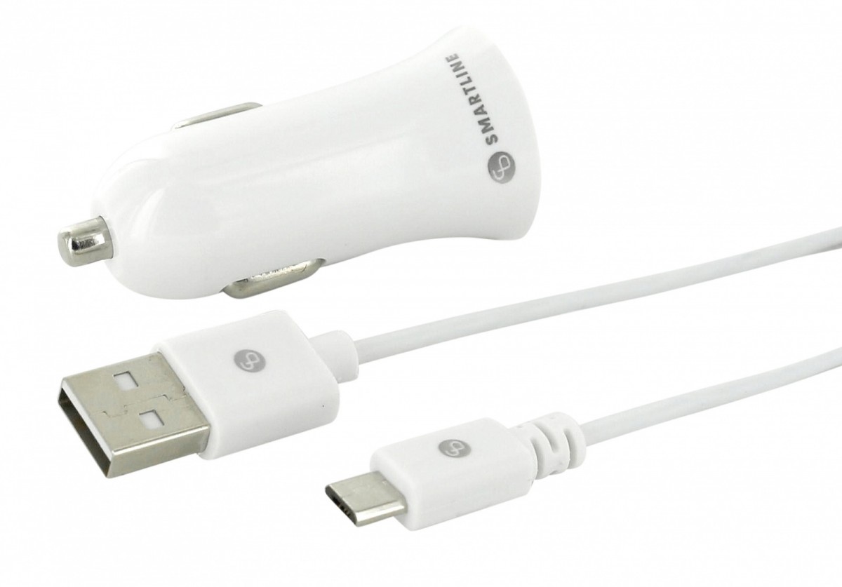 Smartline ładowarka samochodowa 2,4A 1m MicroUSB biała