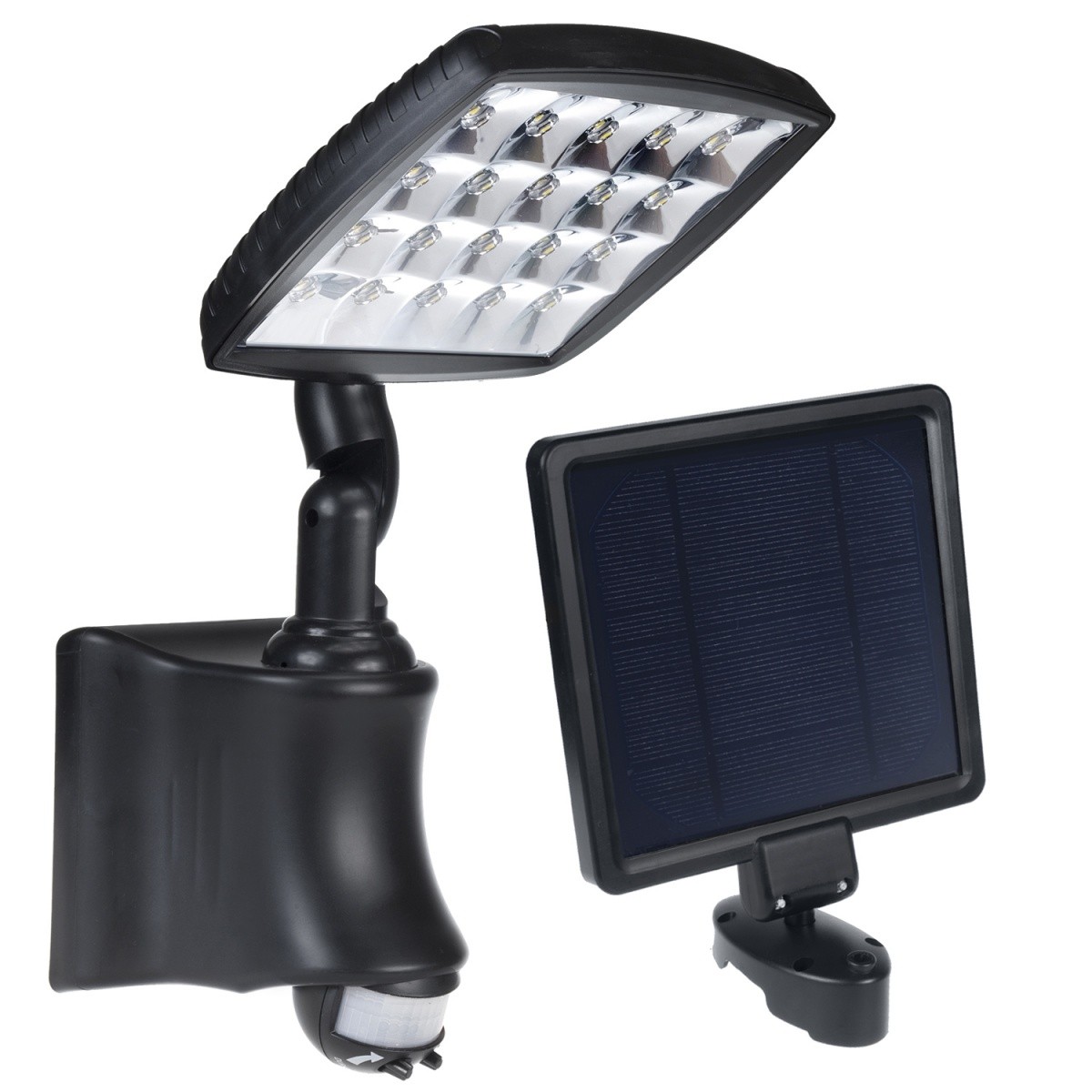 Wbudowany czujnik ruchu PIR oraz czujnik zmierzchowy gwarantują stabilną i bardzo szybką pracę lampy. Nie trzeba montować drogich zewnętrznych czujników. Zasięg sensorów jest bardzo duży. Dzięki czujnikowi zmierzchowemu lampa włącza się tylko w nocy, a czujnik ruchu gwarantuje, że lampa zadziała tylko wtedy kiedy zajdzie taka potrzeba.