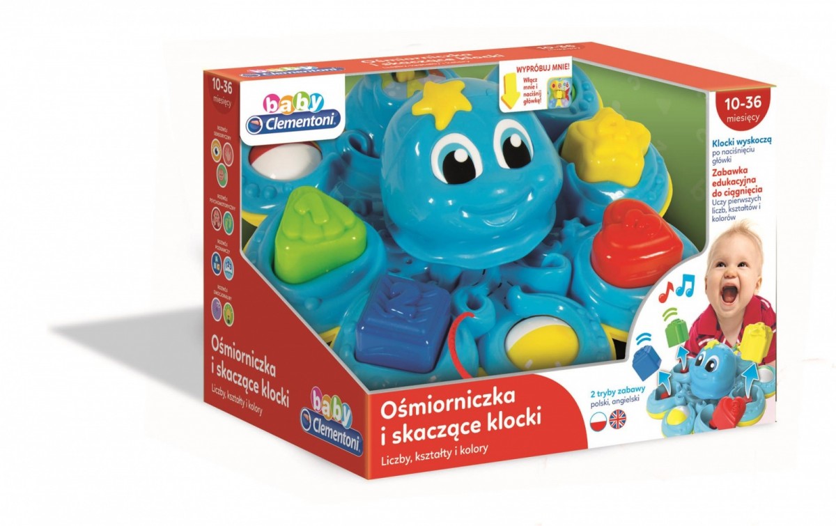- Rozwija umiejętności manualne i pomaga dzieciom uczyć się kształtów, kolorów, liczb od 1 do 4 i angielskich słów z interesującymi piosenkami.