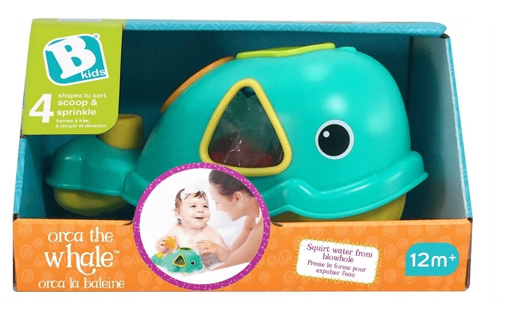 Kąpielowy sorter dla malucha w kształcie wieloryba. Zestaw składa się z czterech kolorowych klocków, a sam wielorybek potrafi tryskać wodą! Zabawka przeznaczona dla dzieci powyżej 12 miesiąca życia.