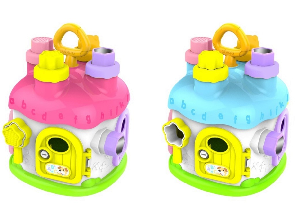 - Wykonany jest z wysokiej jakości plastiku. Zestaw zawiera 4 sensoryczne grzechoczące klocki: serce, sześcian, gwiazdka, owal.