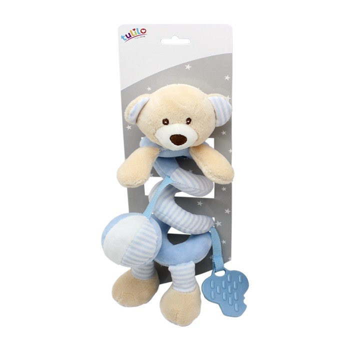 New Baby Miś sprężynka pluszowa z dodatkami to bardzo miła przytulanka w delikatnym kolorze. Zabawka ma uspokajający wpływ na małe dzieci i doskonale się sprawdza jako pomoc przy usypianiu. Miś wykonany jest z miłych, delikatnych materiałów i jest bezpieczny dla dzieci od pierwszych dni życia.