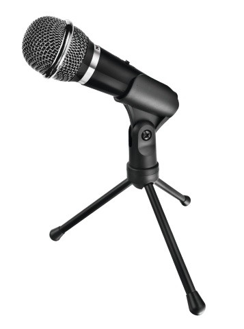 Wysoce wydajny mikrofon z przyciskiem wyciszenia i trójnożną podstawką zapewnia odtwarzanie wyjątkowo wyraźnego i naturalnego głosu