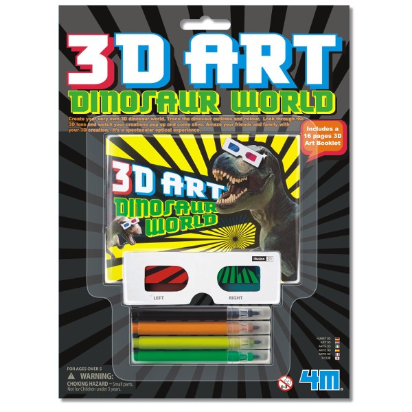 Pokoloruj specjalnymi flamastrami zarysy dinozaurów. Spójrz przez okulary 3D i zobacz jak dinozaury ożywają. Zaskocz swoich znajomych i rodzinę własną trójwymiarową twórczością. To spektakularne doświadczenie optyczne!