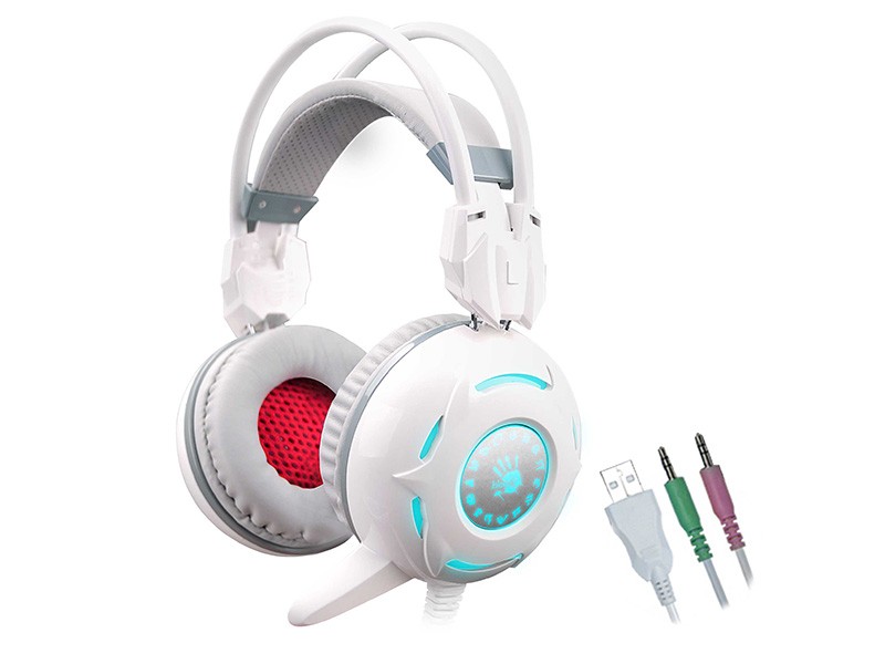 Najnowsze słuchawki uznanej gamingowej marki Bloody. Słuchawki stereo, gwarantujące komfort odsłuchu dzięki idealnie wyprofilowanym nausznikom nawet przy wielogodzinnym użytkowaniu. Doskonałe materiały wpływają zarówno na doskonały, niepowtarzalny wygląd jak i jakość wykonania. Komunikacja poprzez tradycyjne wtyki mini jack oraz dodatkowo wtyk USB umożliwiający włączenie podświetlenia. Regulacja dźwięku wbudowana w nausznik, ultra wytrzymały długi kabel w oplocie.