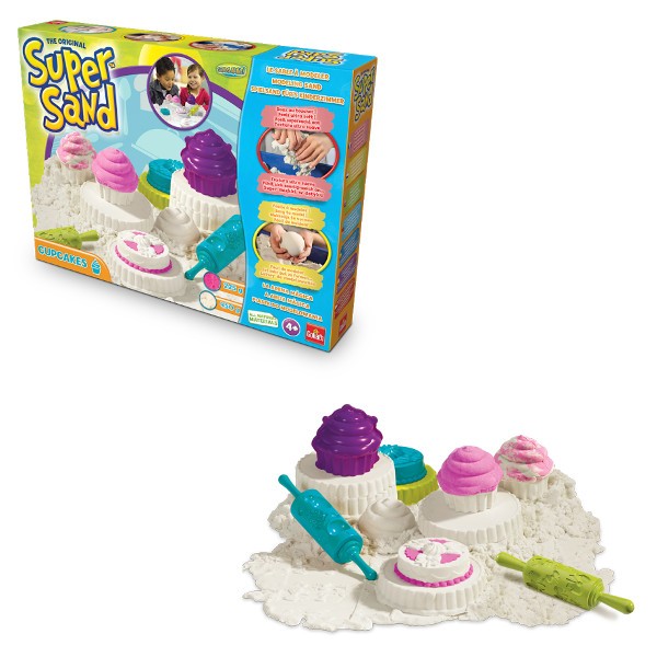 Super Sand przenosi lato i zabawę piaskiem do domu. Super aksamitne w dotyku, suche a jednocześnie „antybakteryjne” i 100% naturalne, takie jest tworzywo Super Sand. Piasek, który można używać jeszcze raz i jeszcze raz i jeszcze… Zrób babkę z piasku albo zamek z fosą. Dołączone narzędzia i piękne foremki pomogą stworzyć czego dusza zapragnie. Masa Super Sand składa się z naturalnych składników mineralnych. Jeżeli coś się rozsypie poza „piaskownice”, nie ma problemu ponieważ masa ma specjalną strukturę pomagającą w utrzymaniu czystości.
