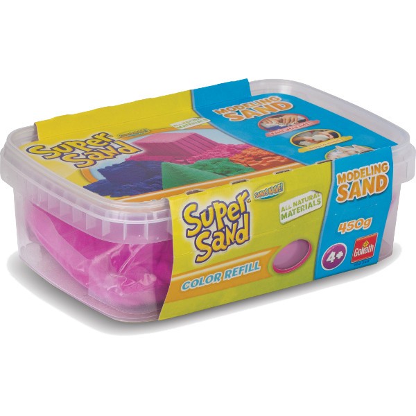 Super Sand przenosi lato i zabawę piaskiem do domu. Super aksamitne w dotyku, suche a jednocześnie antybakteryjne i 100% naturalne, takie jest tworzywo Super Sand. Piasek, który można używać jeszcze raz i jeszcze raz i jeszcze… Zrób babkę z piasku albo zamek z fosą. Dołączone narzędzia i piękne foremki pomogą stworzyć czego dusza zapragnie. Masa Super Sand składa się z naturalnych składników mineralnych. Jeżeli coś się rozsypie poza „piaskownice”, nie ma problemu ponieważ masa ma specjalną strukturę pomagającą w utrzymaniu czystości. Super Sand stymuluje kreatywność dzieci.Daj się ponieść swojej wyobraźni i ciesz się swoimi kreacjami z Super Sand! Dotknij aby poczuć różnice.