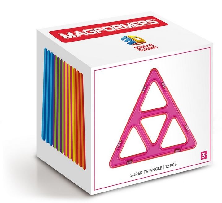 MAGFORMERS SINGLE SET SUPER TRÓJKĄTY 12 to klocki z wbudowanymi silnymi magnesami neodymowymi, które zawsze się przyciągają. Wystarczy zbliżyć do siebie ściankami dwa klocki, a one natychmiast ze sobą się połączą.