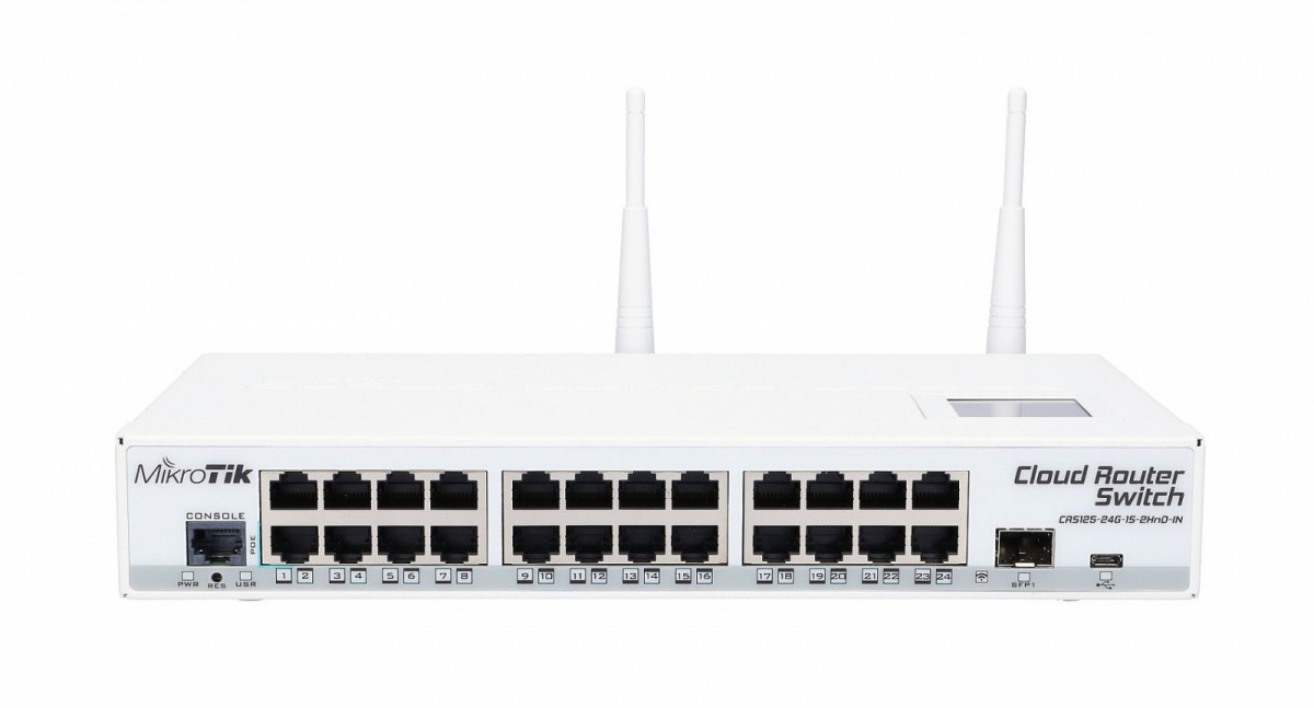 Model CRS125-24G-1S-2HnD-IN posiada wbudowany bezprzewodowy access point pracujący w paśmie 2.4GHz. Oznacza to, że w jednym urządzeniu można mieć bezprzewodowy access point (lub wireless client), router z dowolną ilością portów oraz switch z pełną wydajnością przełączania.