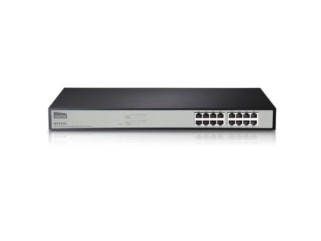 Przełącznik niezarządzalny 16 portowy Netis ST3116 Rack 19 - 16 porty 10/100Mbps Auto-Negotiation RJ45.