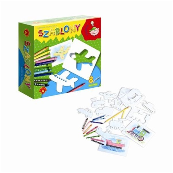 "Szablony" to zabawka, która składa się z 8 szablonów (w pozytywie i negatywie). Szablony przedstawiają 8 różnych pojazdów. Dzięki nim dziecko może w łatwy sposób narysować wybrany pojazd co jest zachętą i pretekstem do narysowania całego obrazka.