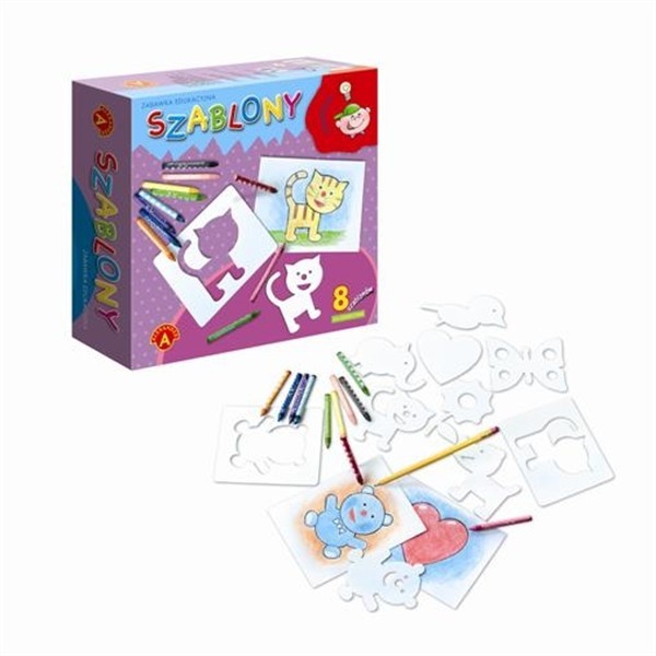 "Szablony" to zabawka, która składa się z 8 szablonów (w pozytywie i negatywie). Szablony przedstawiają 8 różnych sylwetek (np. psa, kota itp.) Dzięki nim dziecko może w łatwy sposób narysować wybraną sylwetkę wzbogacając ją kolorem i dodatkowymi elementami.