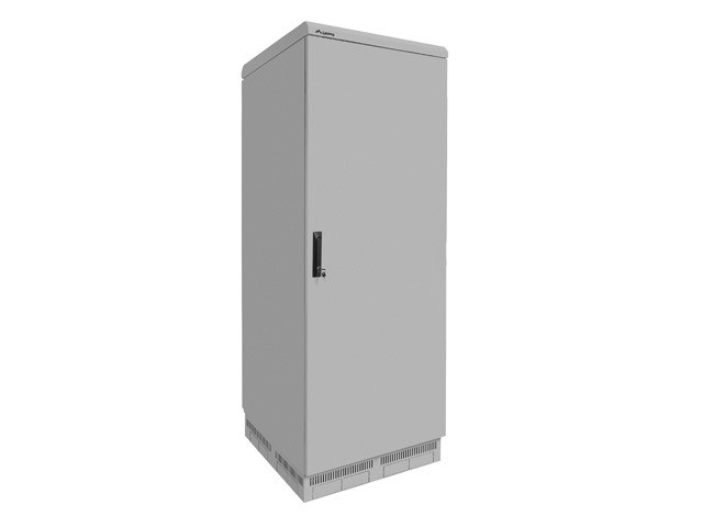 Szafa teleinformatyczna jednosekcyjna stojąca 37U, 600 x 800 mm, serii FF55, w kolorze szarym o klasyfikacji szczelności IP55 przeznaczona jest do zastosowania w obszarach zewnętrznych szczególnie narażonych na działanie wpływu warunków atmosferycznych, gdzie oczekuje się zapewnienia należytej ochrony zamontowanych wewnątrz urządzeń przed oddziaływaniem niepożądanych czynników takich jak: