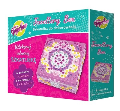 Wyjątkowa szkatułka do dekorowania to idealne miejsce na biżuterię i drobiazgi. Pojemne pudełeczko można w prosty sposób udekorować dżetami i piankowymi kwadracikami, a następnie ukryć w nim drogocenne przedmioty.