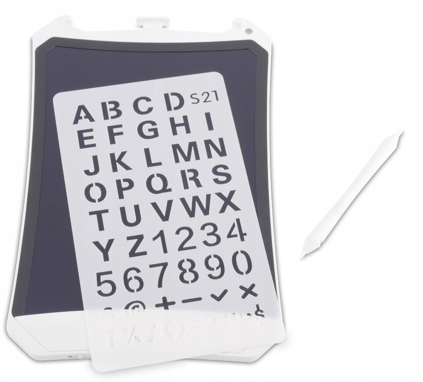 - Szablon do nauki pisania, dwustronny rysik i bateria w zestawie