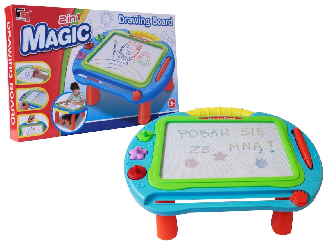 - Zabawa w rysowanie na tablicy magnetycznej rozwija motorykę małej ręki oraz pobudza wyobraźnię malucha.