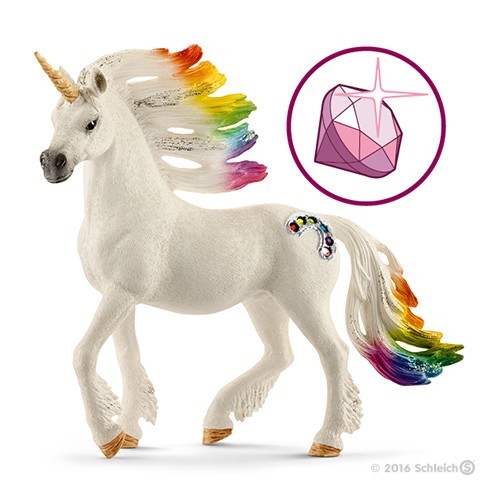 W świetle porannego słońca grzywy magicznych stworzeń błyszczą we wszystkich kolorach tęczy. Podobnie jak większość jednorożców, ten jest bardzo nieśmiały. Garstka osób szczęśliwców, którzy go zobaczyli jednorożca twierdzi, że w jego grzywie znajdują się magiczne kamienie. Jest wiele tajemniczych opowieści na temat tych stworzeń - i nikt nie wie, czy są prawdziwe. Ale wszyscy zgadzają się, że tęczowe jednorożce to niezwykle piękne i magiczne stworzenia.