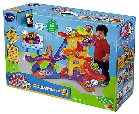 - Wiele ruchomych elementów na całej powierzchni zabawki, które wzmacniają umiejętności motoryczne dziecka: ruchoma flaga, dźwignia zjazdu oraz ruchoma platforma, przyciski w punkcie postojowym