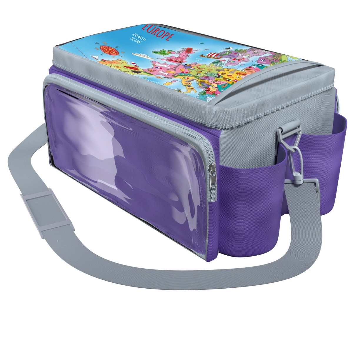 Nauka geografii podczas jazdy samochodem? Na blacie torby znajduje się kieszeń, a w niej kolorowa, edukacyjna mapa Europy. Zamiast mapy dziecko może włożyć do kieszeni swój ulubiony rysunek.