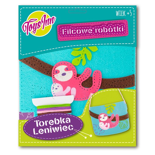 Uszyj własnyą torebkę w kształcie słodkiego leniwca. Zestaw zawiera przygotowane elementy z filcu do zszycia, plastikową igłę, nici, sznurek i instrukcję. Z tego zestawu uszyjesz torebkę o wymiarach 16 x 12 x 4 cm. Produkt przeznaczony dla dzieci w wieku 5+.
