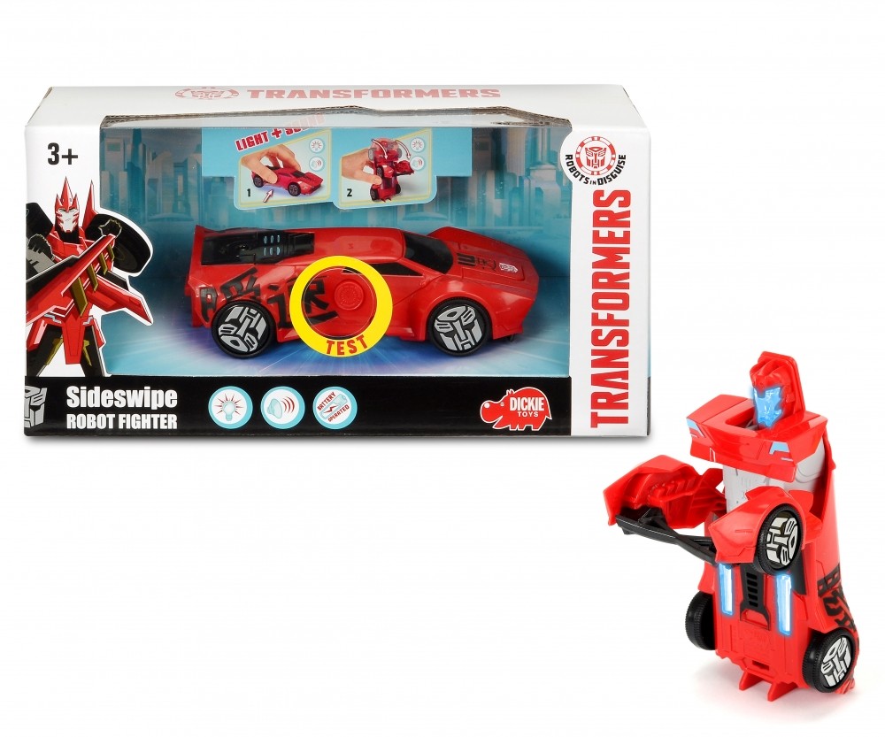 Strona główna Pojazdy pojazdy Transformers Walczący robot Sideswipe Cena Netto: 58,94 zł. error_outline Produkt chwilowo niedostępny. Opis Dickie Transfomers Walczący robot Sideswipe.