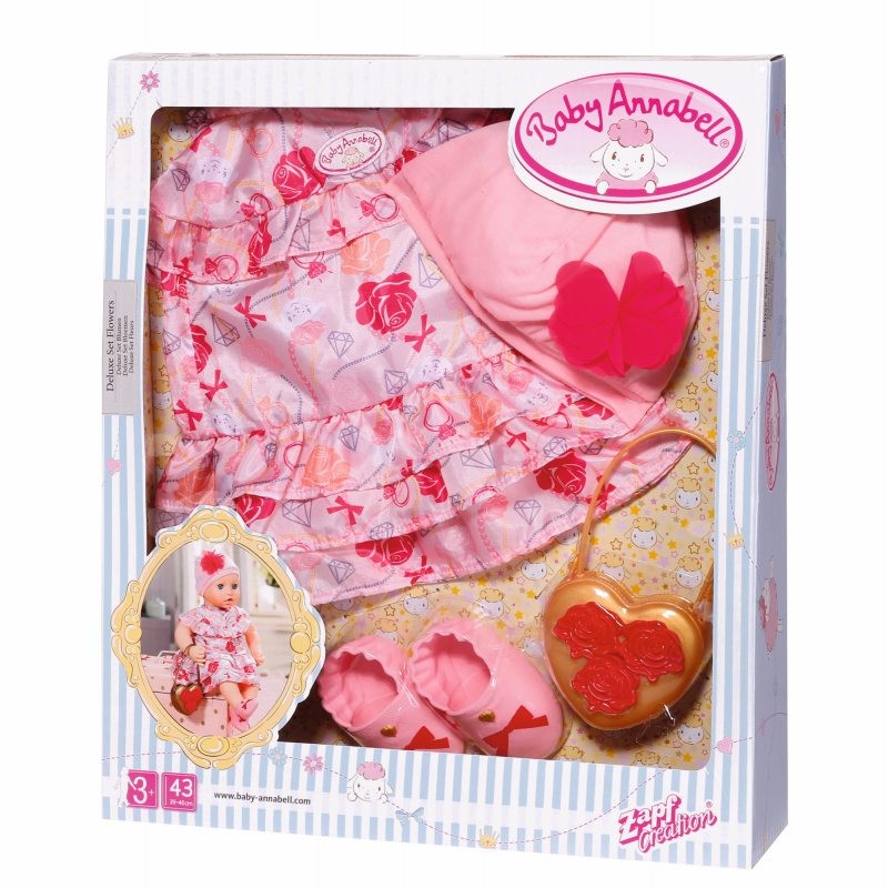 Strona główna Lalki akcesoria Ubranko w kwiaty Baby Annabell Cena Netto: 62,10 zł. error_outline Produkt chwilowo niedostępny. Opis Ubranko w kwiaty Baby Annabell.Romantyczna sukienka w kwiatki, fantazyjny kapelusz oraz buciki. Stylowy strój wykończony jest dopasowaną kwiatową torebką.Pasuje do lalek w rozmiarach 39-46 cm.