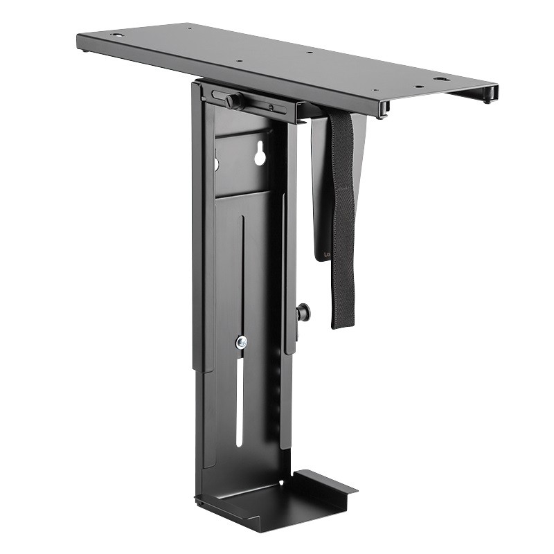 Zaprojektowany do montażu komputera pod biurkiem, aby zaoszczędzić więcej miejsca w miejscu pracy i chronić urządzenie w największym możliwym stopniu przed kurzem. Dzięki regulowanemu ramieniu podporowemu, uchwyt jest odpowiedni dla wielu komputerów, a jego rotacja zapewnia maksymalną elastyczność pod biurkiem.