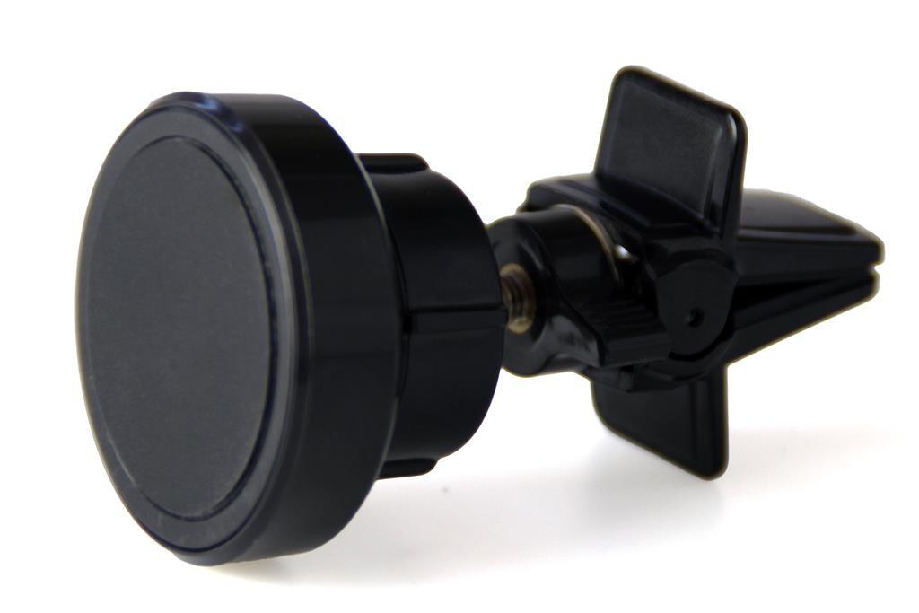 Samochodowy uchwyt magnetyczny do urządzeń mobilnych. Montaż w większości typów kratek wentylacyjnych. Innowacyjny system montażu zacisku - uchwyt nie wysunie się nawet podczas terenowej jazdy. Mocna metalowa konstrukcja. Silny magnes pewnie utrzymujący telefon nawet przez grube etui. Głowica blokowana nakrętką aby telefon był w pożądanej pozycji.