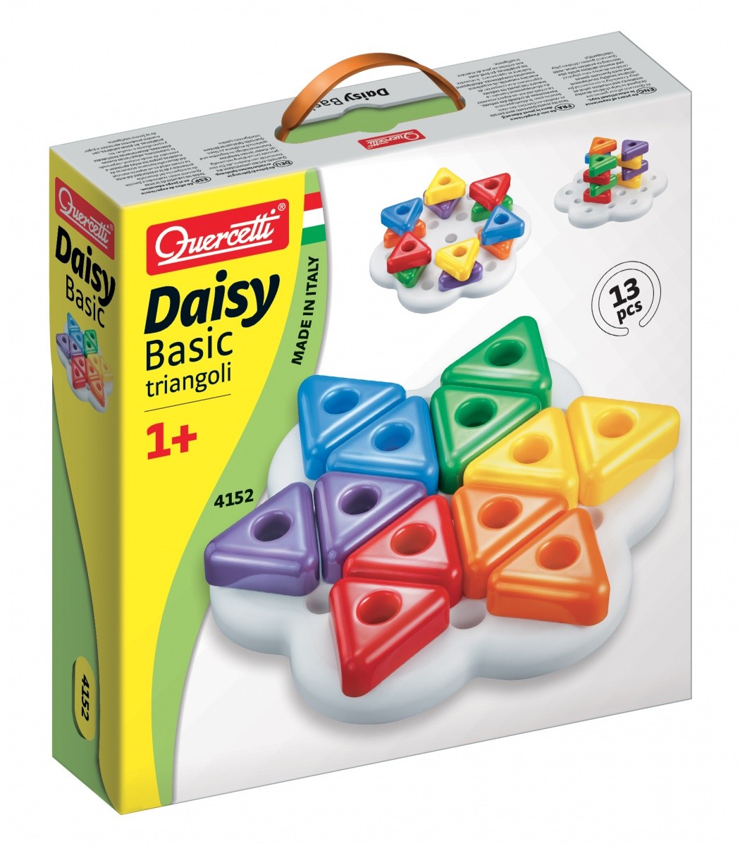 Na elastyczną podstawę w kształcie kwiatka można umieszczać kolorowe trójkątne klocki.