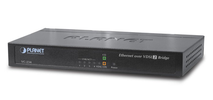 PLANET VC-234 jest wysokowydajnym konwerterem Ethernet-over-VDSL2. Opiera się na dwóch technologiach sieciowych Ethernet oraz VDSL2 (Very-high-data-rate Digital Subscriber Line 2). Ta ostatnia gwarantuje najszybsze możliwe połączenia poprzez istniejące miedziane sieci telefoniczne. VC-231 obsługuje ultra szybkie połączenia 100/100Mbps na odległość do 300m oraz 50/2Mbps na odległość 1,4km z wykorzystaniem zwykłej linii telefonicznej.