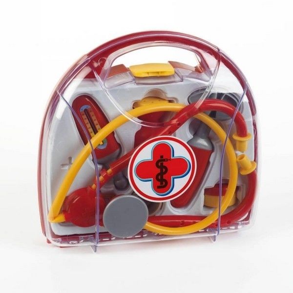 Kuferek małego lekarza zawiera m.in. stetoskop, termometr, młoteczek.